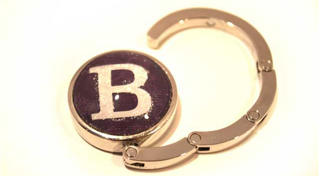 7. Press the Cabochon into place on the purse hanger, making sure to align the monogram in the direction you prefer.